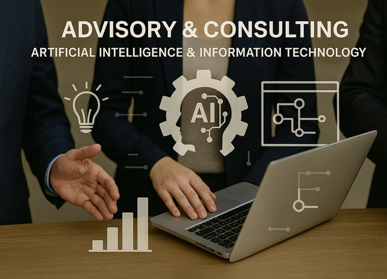 Accelerate your business transformation with tailored consulting in Information Technology and Artificial Intelligence. From strategy and architecture to implementation and optimization, our expert advisors help you harness cutting-edge technologies to boost efficiency, innovation, and growth. Whether you're exploring AI integration or scaling your IT infrastructure, we guide you every step of the way—turning complexity into opportunity.